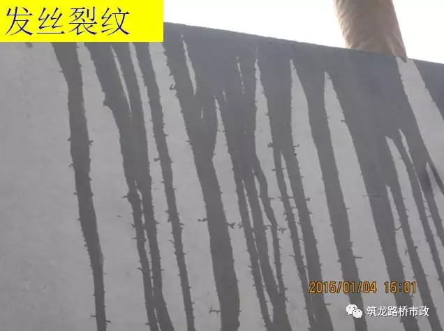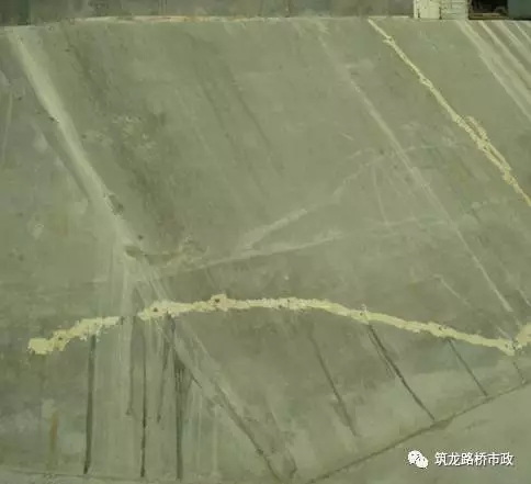 受大風(fēng)影響,表面混凝土水分散失很快,若此時(shí)未及時(shí)覆蓋養(yǎng)護(hù)或者抹面處理,混凝土?xí)蝻L(fēng)干失水而開(kāi)裂,該裂縫大多發(fā)生在澆筑后的幾個(gè)小時(shí)之內(nèi),裂縫長(zhǎng)度不一,寬度不一、但大多穿透鋼筋。