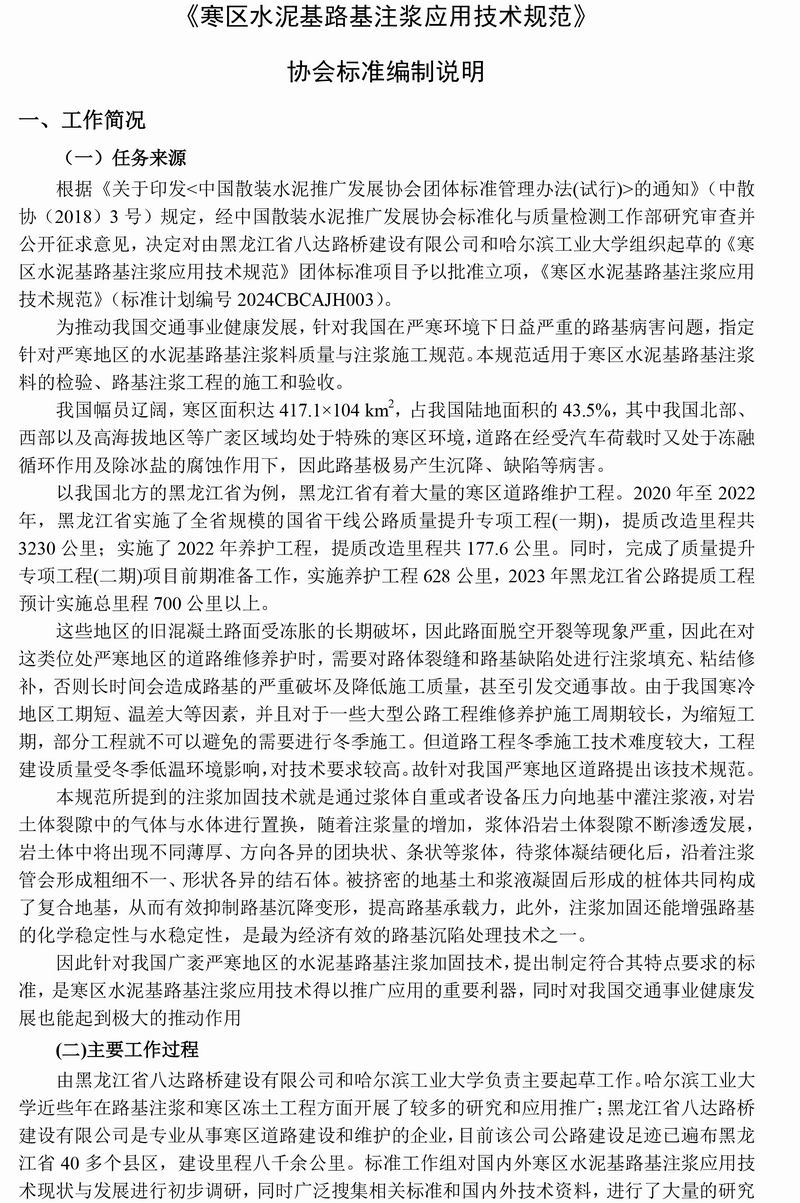 編制說(shuō)明-寒區(qū)水泥基路基注漿應(yīng)用技術(shù)規(guī)范