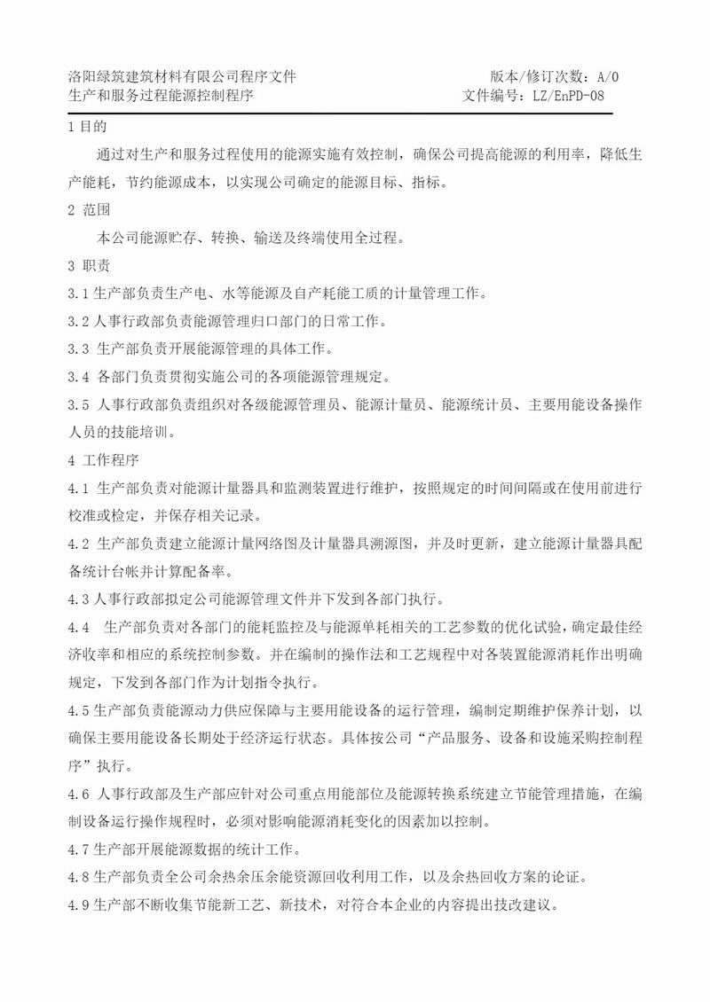 能源管理體系程序文件匯編