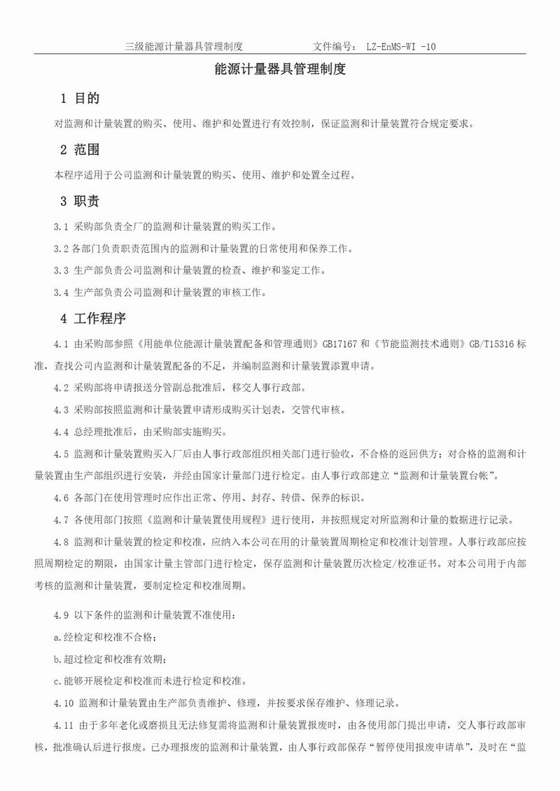 能源計(jì)量器具管理制度