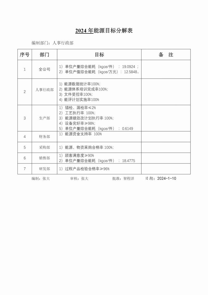 2024年能源目標(biāo)分解表及實(shí)現(xiàn)情況