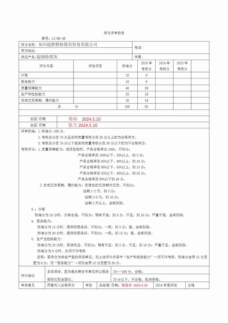 能源供方評定記錄表