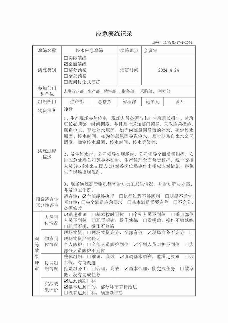 應(yīng)急演練記錄-停水