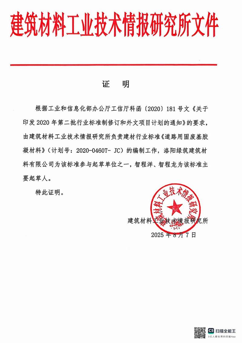 報批稿《道路用固廢基膠凝材料》行業(yè)標準