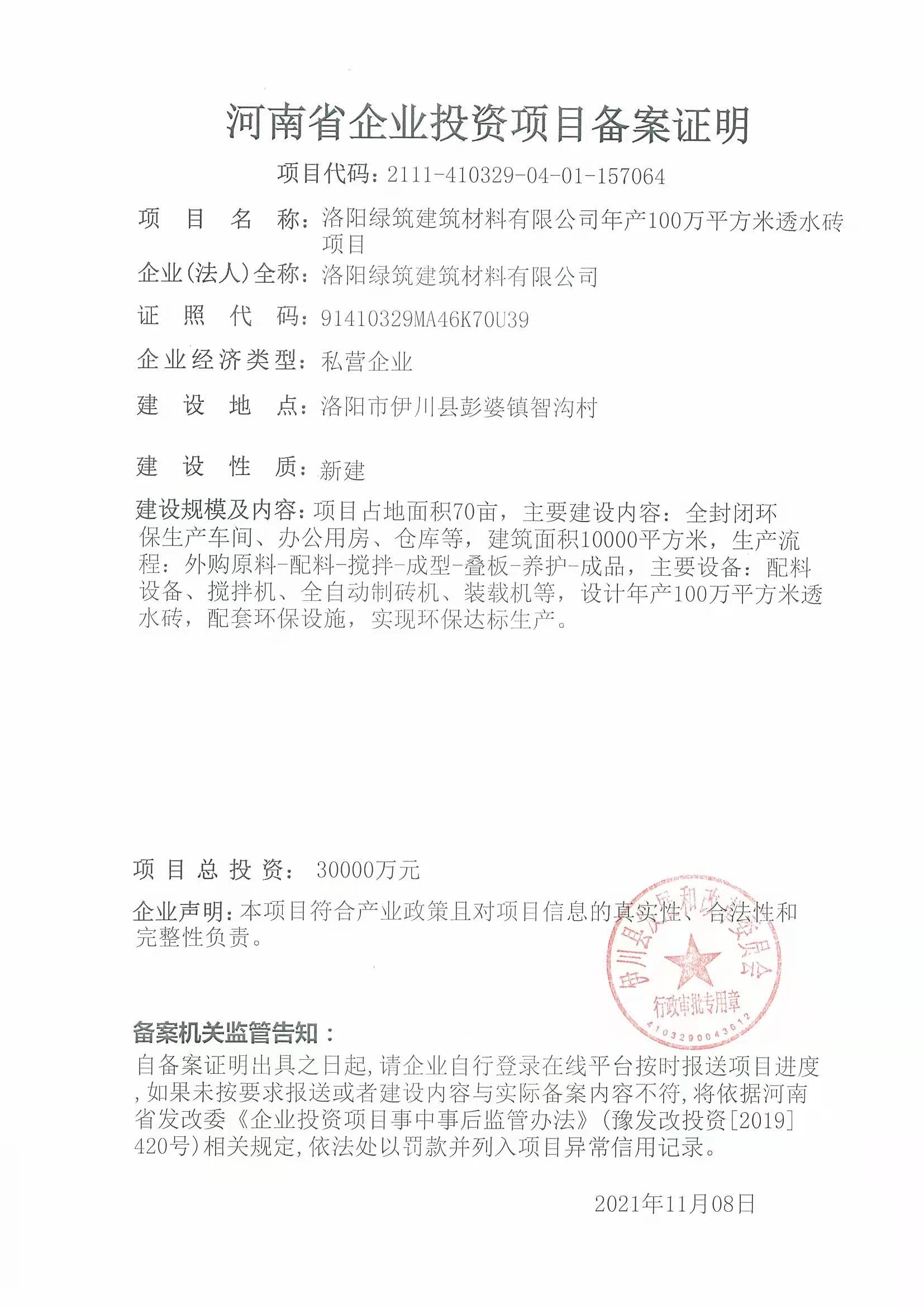 年產(chǎn)100萬透水磚項(xiàng)目