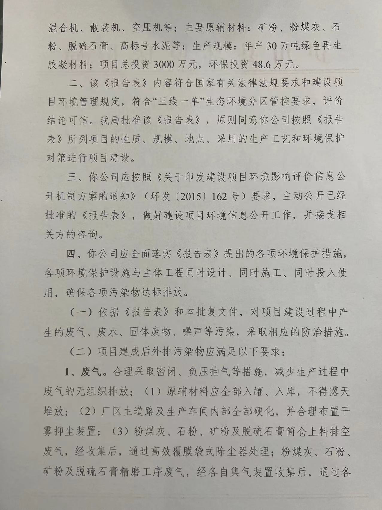 關(guān)于洛陽綠筑建筑材料有限公司年產(chǎn)30萬噸 綠色再生膠凝材料項(xiàng)目環(huán)境影響 報(bào)告表的批復(fù)