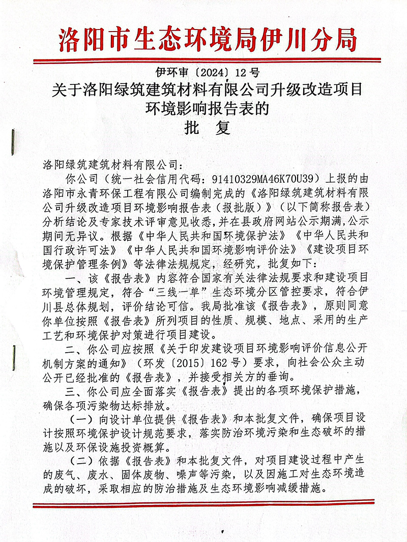 升級改造項(xiàng)目環(huán)境影響報告表的批復(fù)