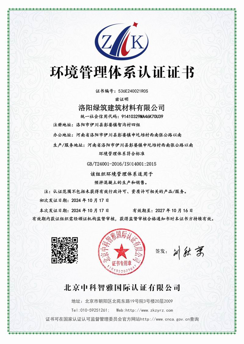 環(huán)境管理體系認(rèn)證證書