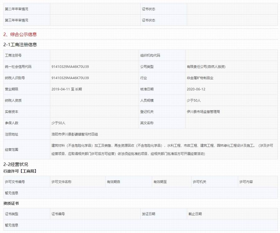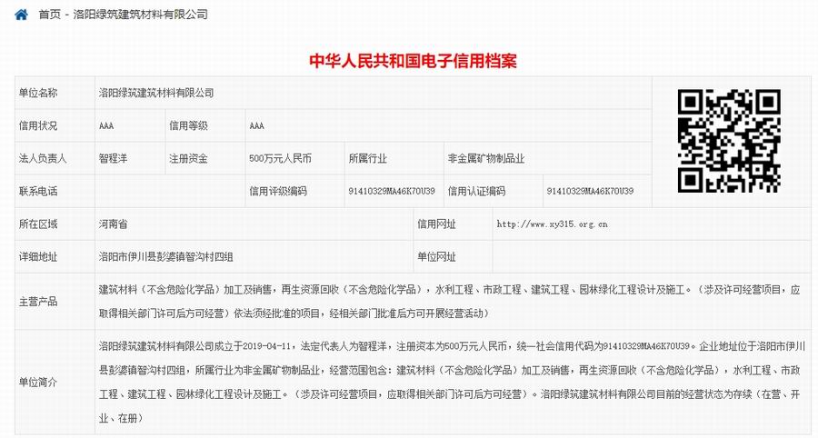 洛陽綠筑建筑材料有限公司電子信用檔案